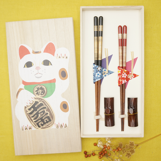 Pair of chopsticks in paulownia wood box with chopstick rest - Fujimi Sakura