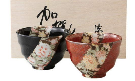 Mino Ware Gift Boxed Pair of Kaga Yuzen Okonomiyaki Bowls