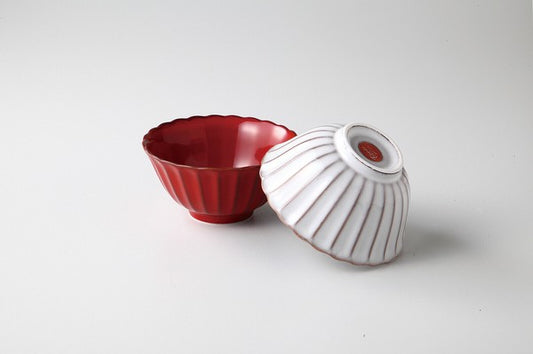 Mino Ware Pair of Elegant Red & White Rice Bowls Gift Boxed
