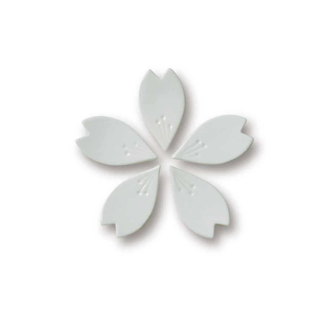 A chopstick rest crafted in the shape of a cherry-blossom petal. Featuring pistil designs on the surface and a slight curve to prevent chopsticks from rolling. One set contains five pieces and the flower-shaped package makes for a delightful present.
