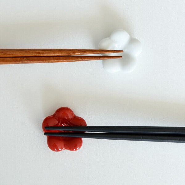 Plum blossom chopstick rests with a plump silhouette that will soothe you just by looking at them. Available in 2 colors, white and red. These chopstick rests are perfect for use at auspicious occasions.